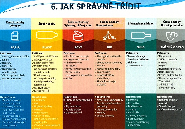 Prosíme o pečlivé třídění odpadů – směsný komunální odpad, sklo, plasty, papír a plech.