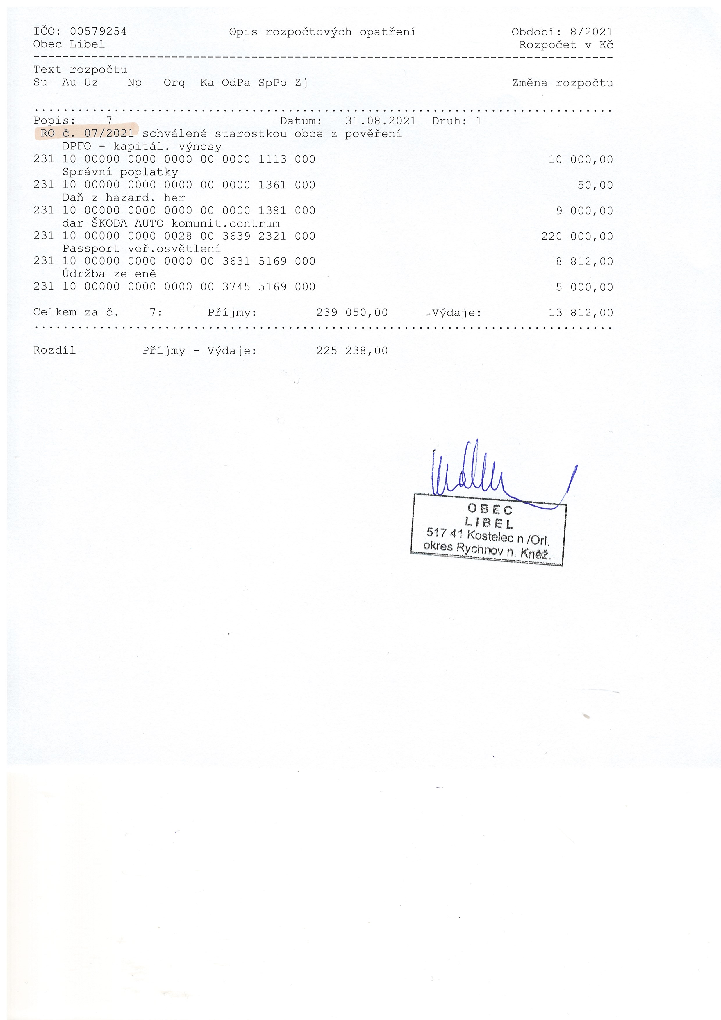 06.09 - 31.12.2021 Rozpočtové opatření č.7